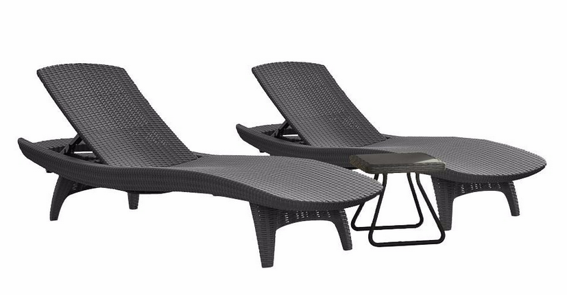 Con el camastro Pacific Sun podrá lucir un espacio elegante, gracias a que se conforma de por un par de dos camastros y una mesita de centro ideal para colocar botanas o bebidas.