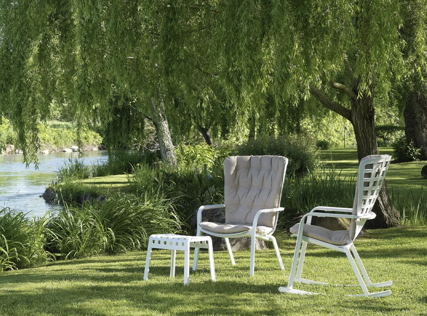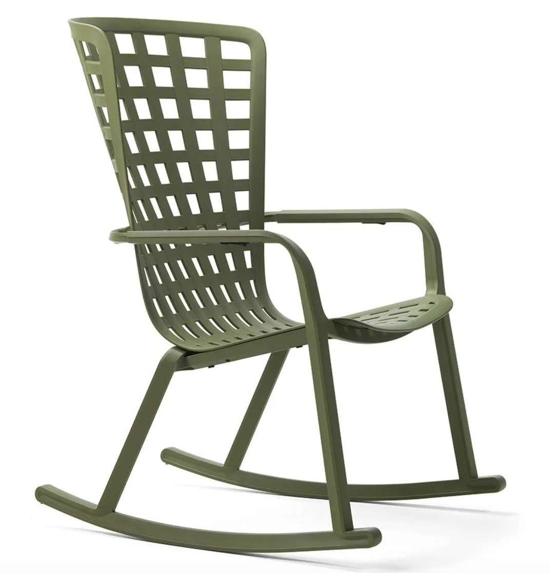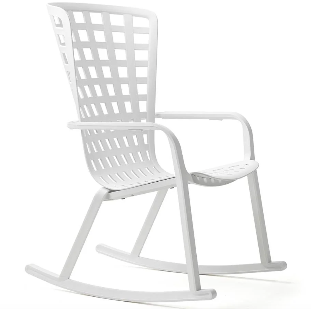 Folio Rocking es un sillón con mecedora para relax outdoor realizado en resina de fibra de vidrio perforado con motivos de cuadros y acabado mate. El sillón presenta un envolvente respaldo conectado sin solución de continuidad al generoso asiento rebajado, un único y refinado abrazo estructural reclinable en dos cómodas posiciones.
