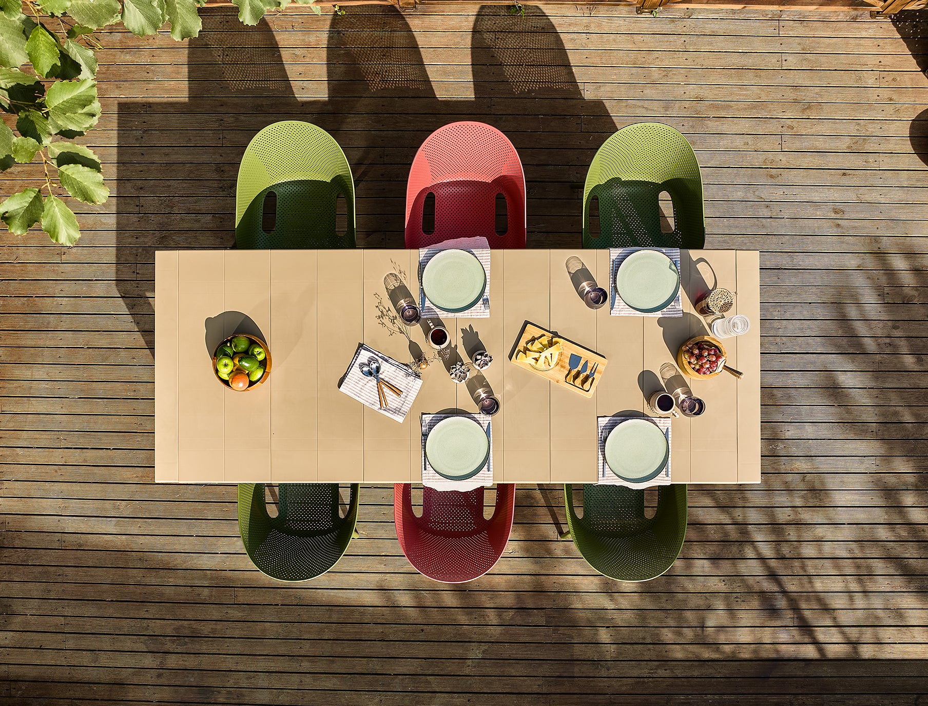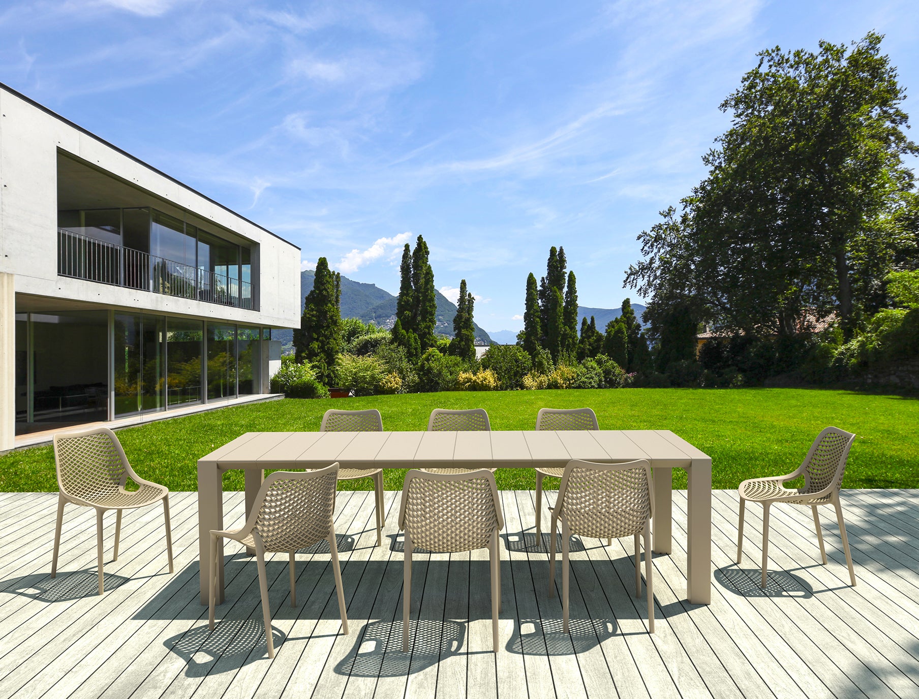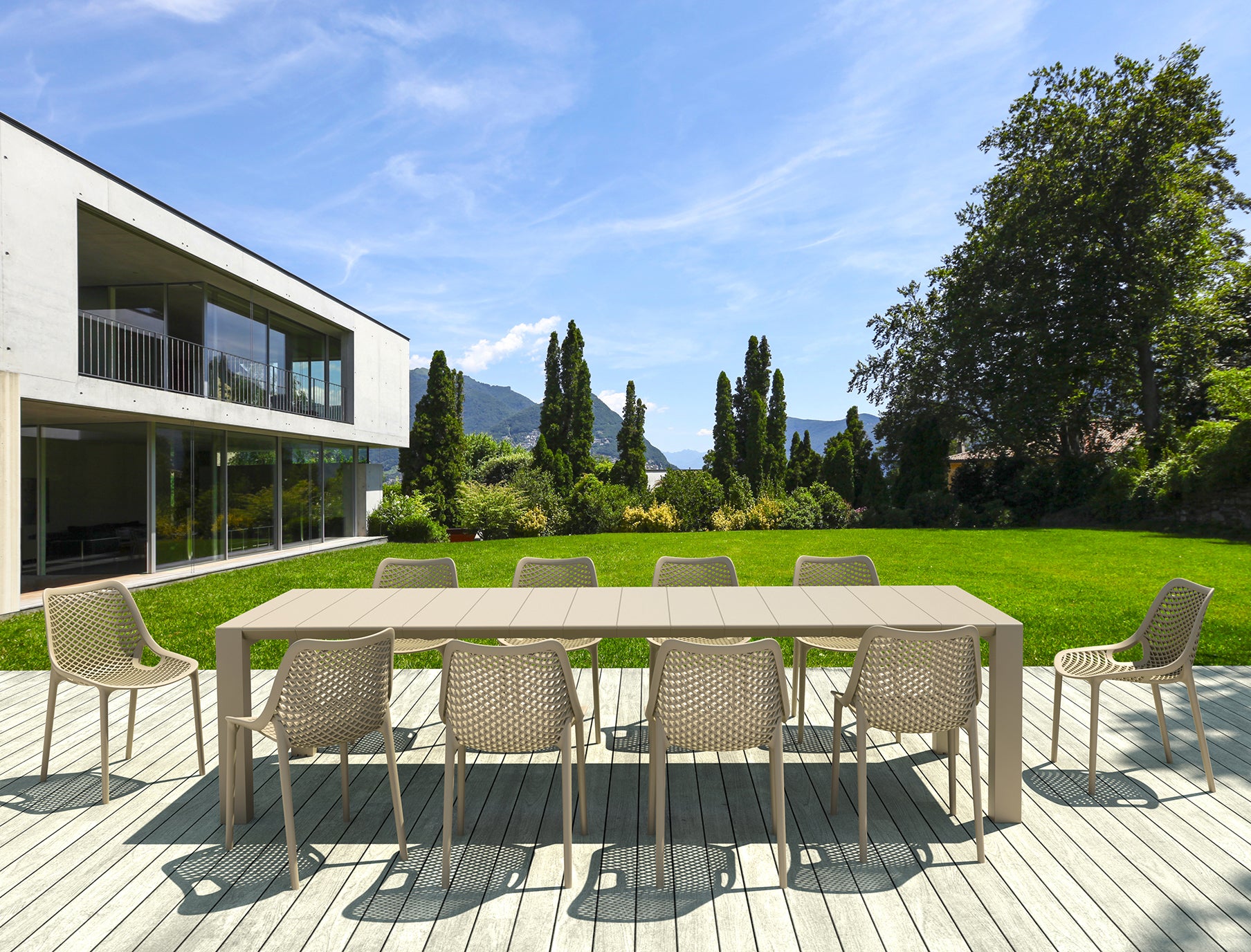Mesa extensible de 260 a 300 cm en polipropileno reforzado con fibra de vidrio. Fácilmente expandible, ofrece dos opciones de tamaño. Su mecanismo de extensión inteligente permite ajustar fácilmente la mesa a su tamaño preferido. Para uso en interiores y exteriores con protección UV.