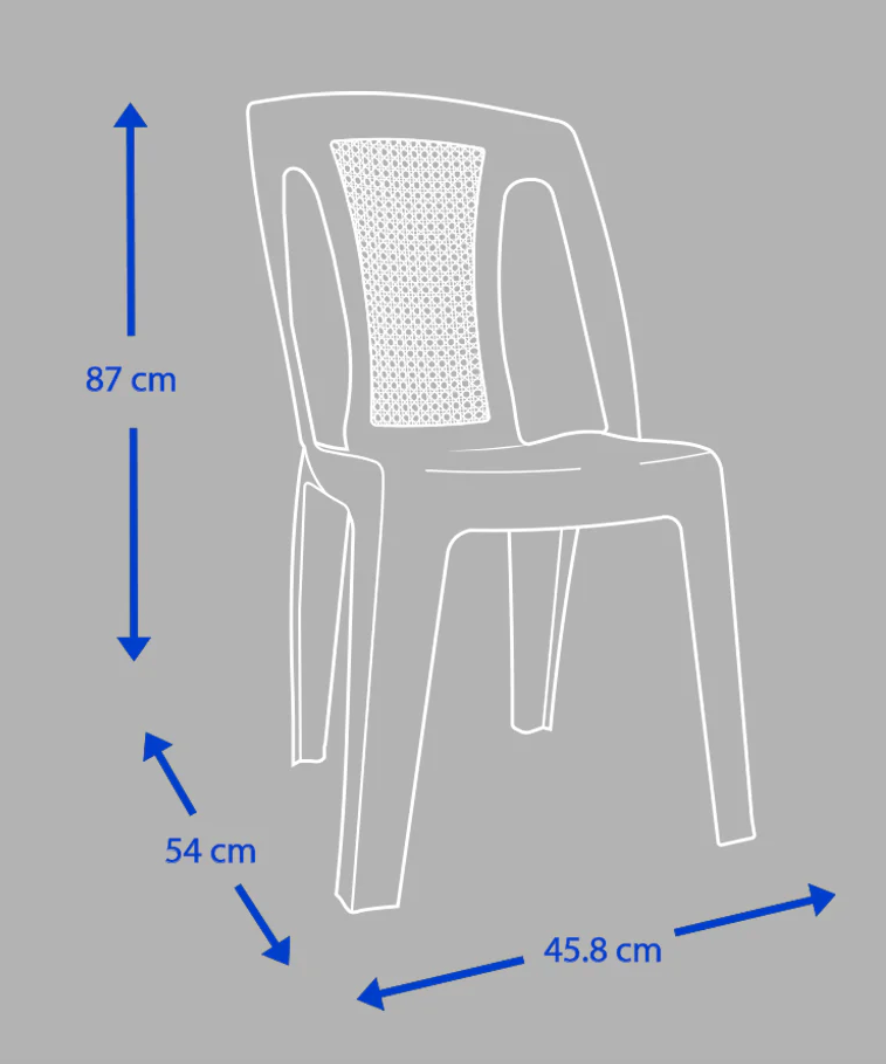 La silla de plastico Aruba se caracteriza por ser una silla económica y atractiva. Ésta silla aguanta hasta 100kg sin problema. Ideal para jardín pero multifacética, nos permite usar la imaginación para darle cualquier uso. El diseño de su respaldo es único.