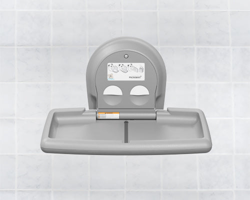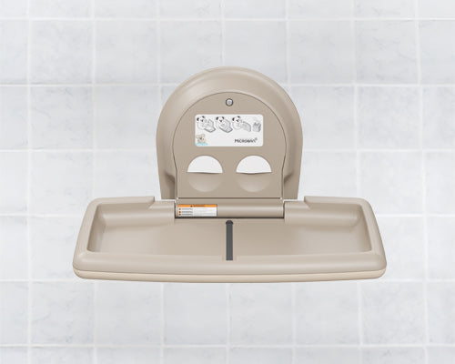La estación de cambio horizontal para bebés montada en superficie está construida de polipropileno y cuenta con un chasis de acero de una sola pieza para una resistencia superior.