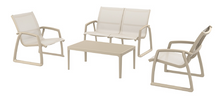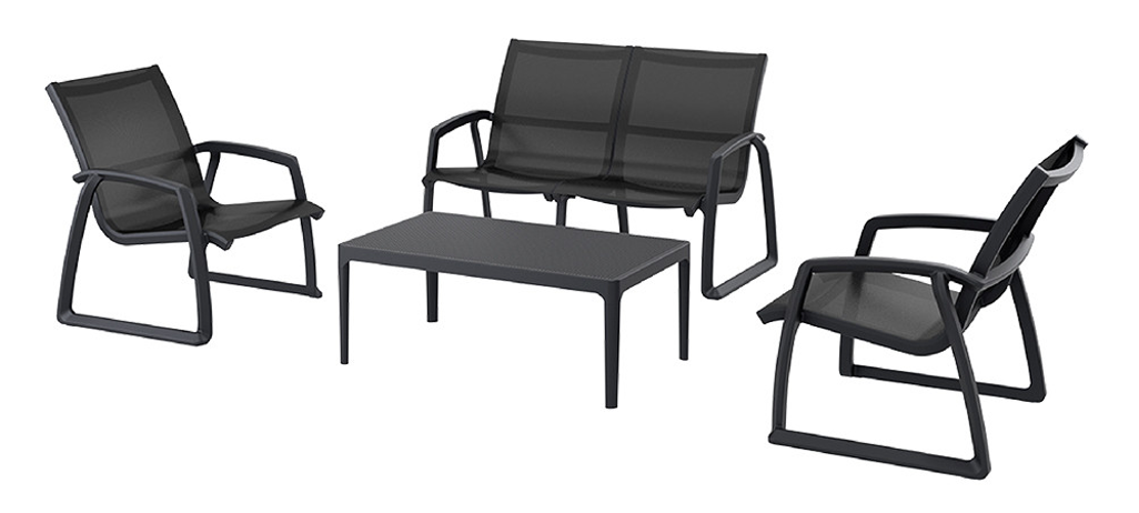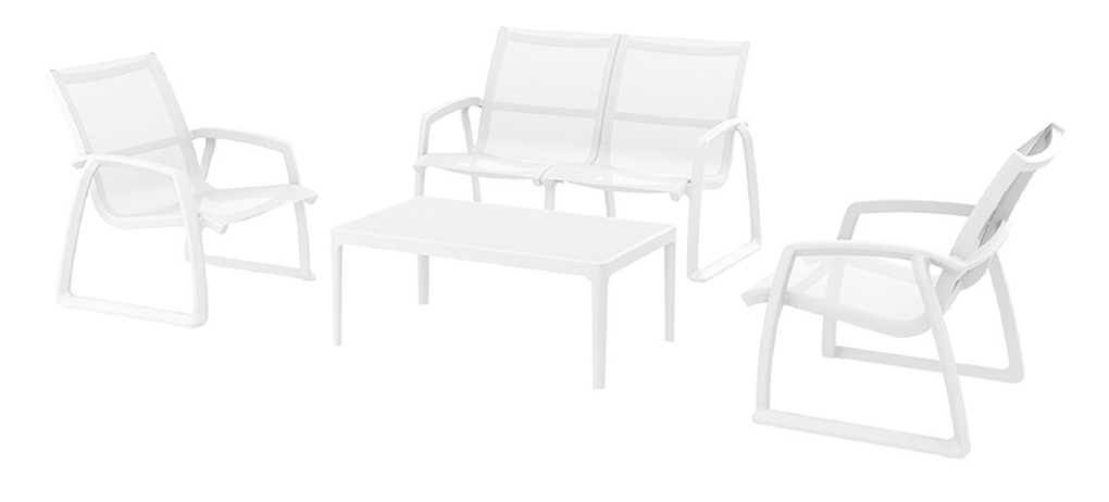 El conjunto de salón Pacific con brazos es fácil de armar. Está hecho de resina resistente a la intemperie, reforzada con fibra de vidrio y tela Batyline de Serge Ferrari. Su estructura no metálica es resistente a la decoloración, oxidación y deterioro. Cuenta con protección UV, lo que garantiza que los colores no se destiñan. Para uso en interiores y exteriores. Se puede comprar como conjunto o por separado.